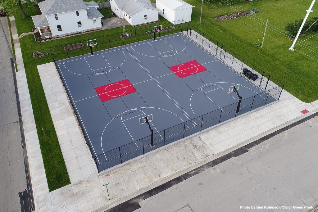Brumbaugh Construction has now completed the Covington Basketball Court Renovation Project. This project, consisted of the removal and replacement of the four basketball goals, fencing, sidewalks and curb surrounding the courts. A new surface coating and striping has now been completed and the courts are ready for use.